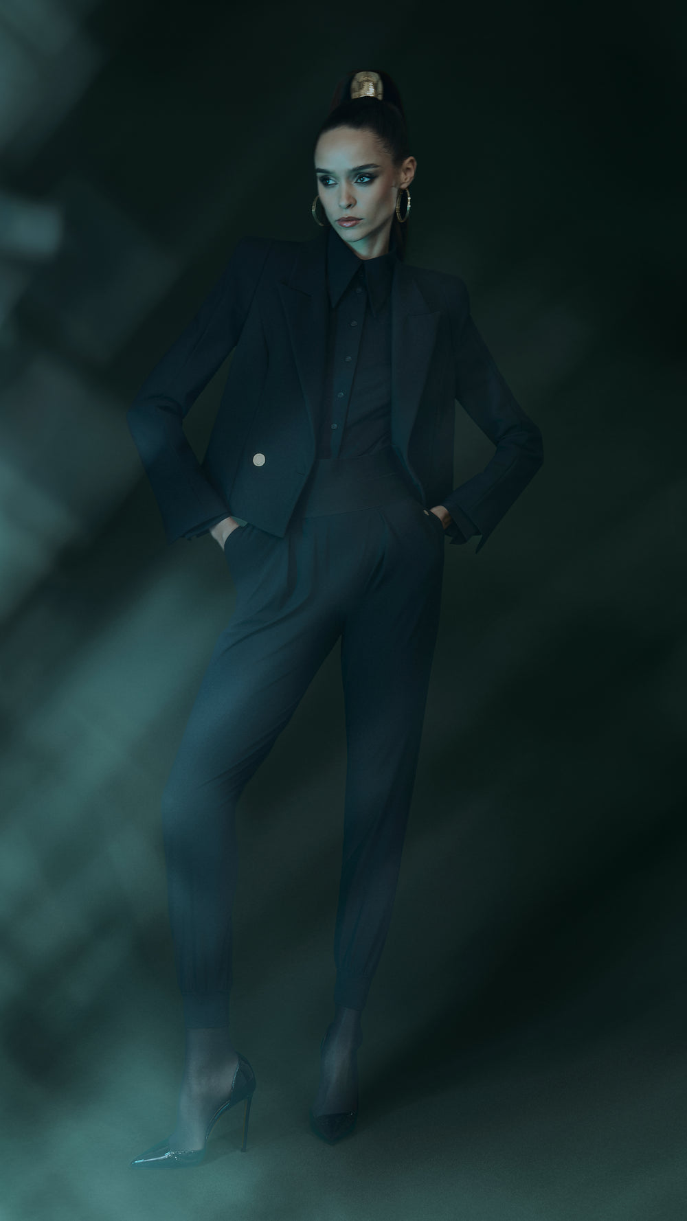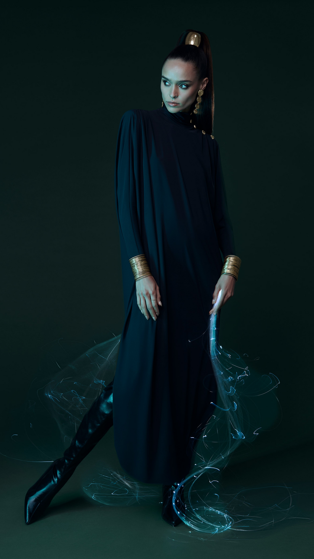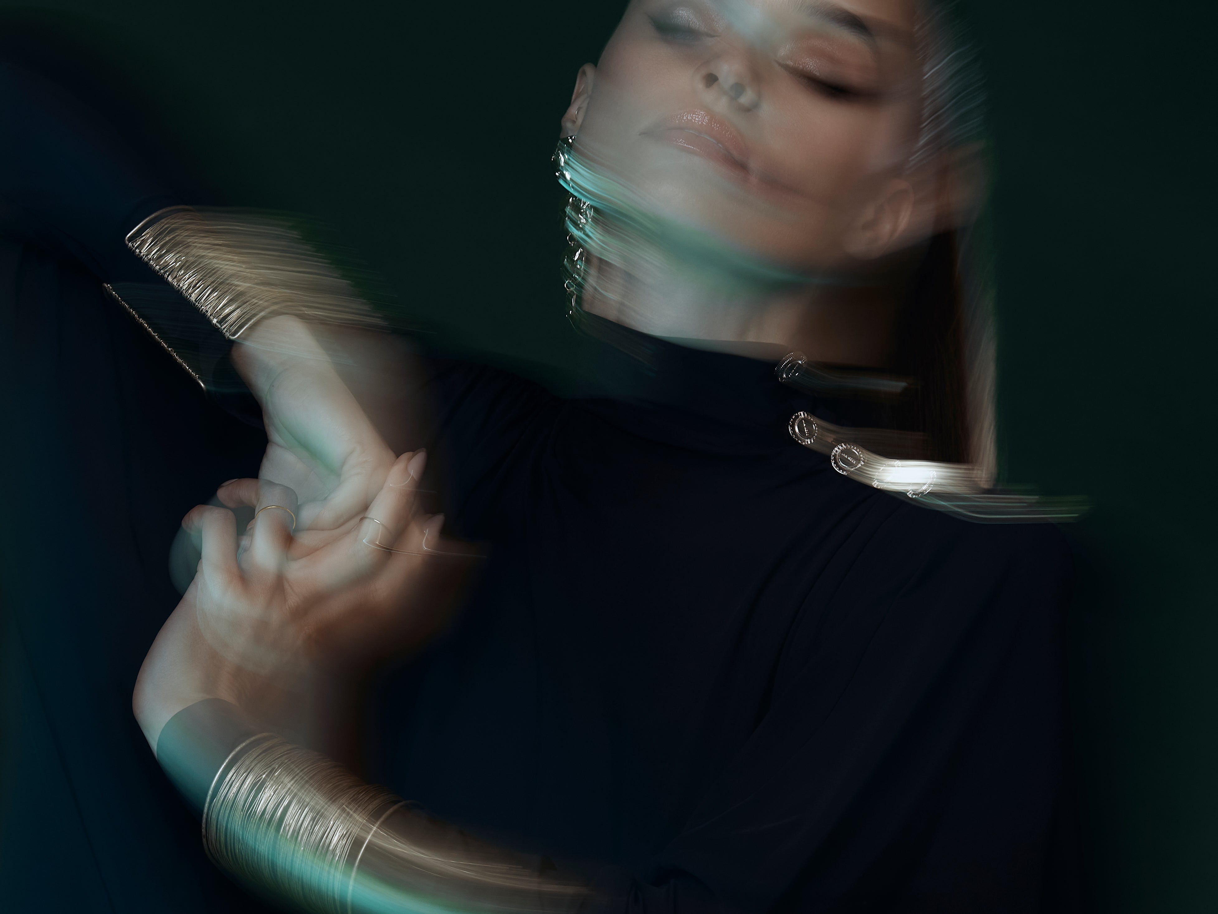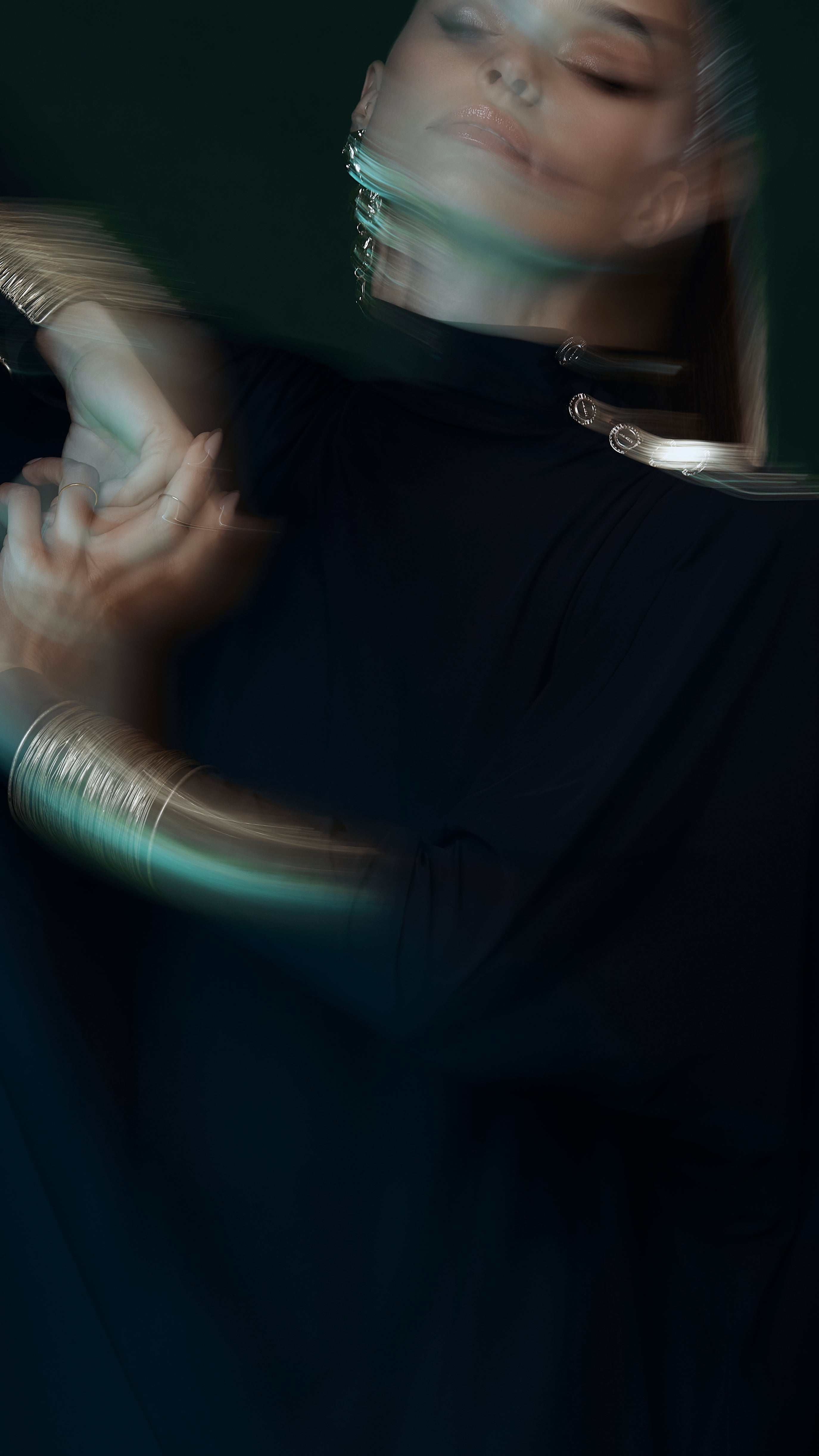 Experience our latest campaign, captured in a dark, atmospheric studio illuminated by striking lights. A play of shadow and glow brings the collection's elegance and drama to life.