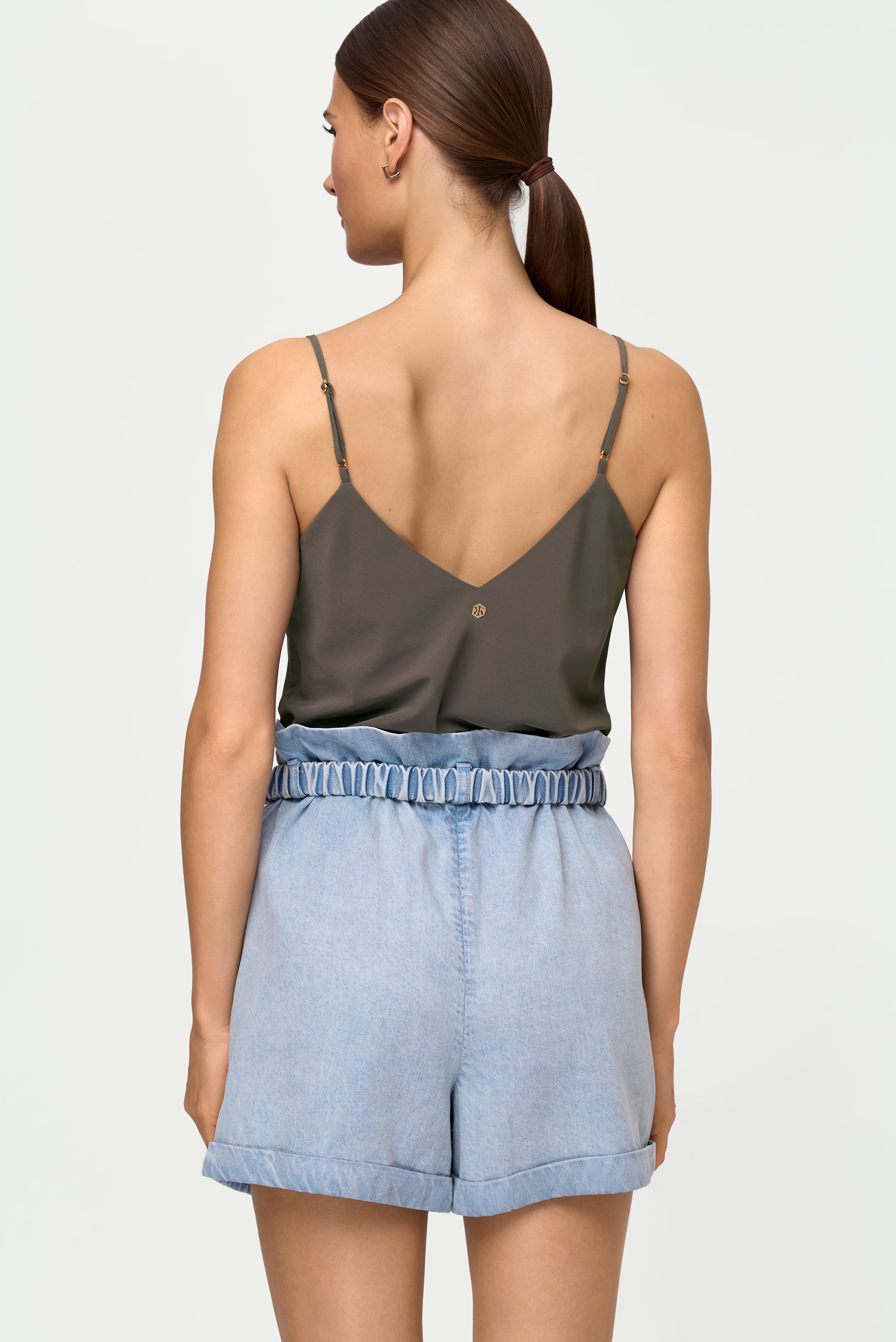 Put on our LUNETTA Top and you won’t want to take it off. This soft and comfy staple is just right for everyday wear. It features a V-neckline in the front and back and adjustable straps. Destined to wear on repeat. Wear with any ombre coloured pants like the TRIPANI Denim Shorts for a chic monochrome look.