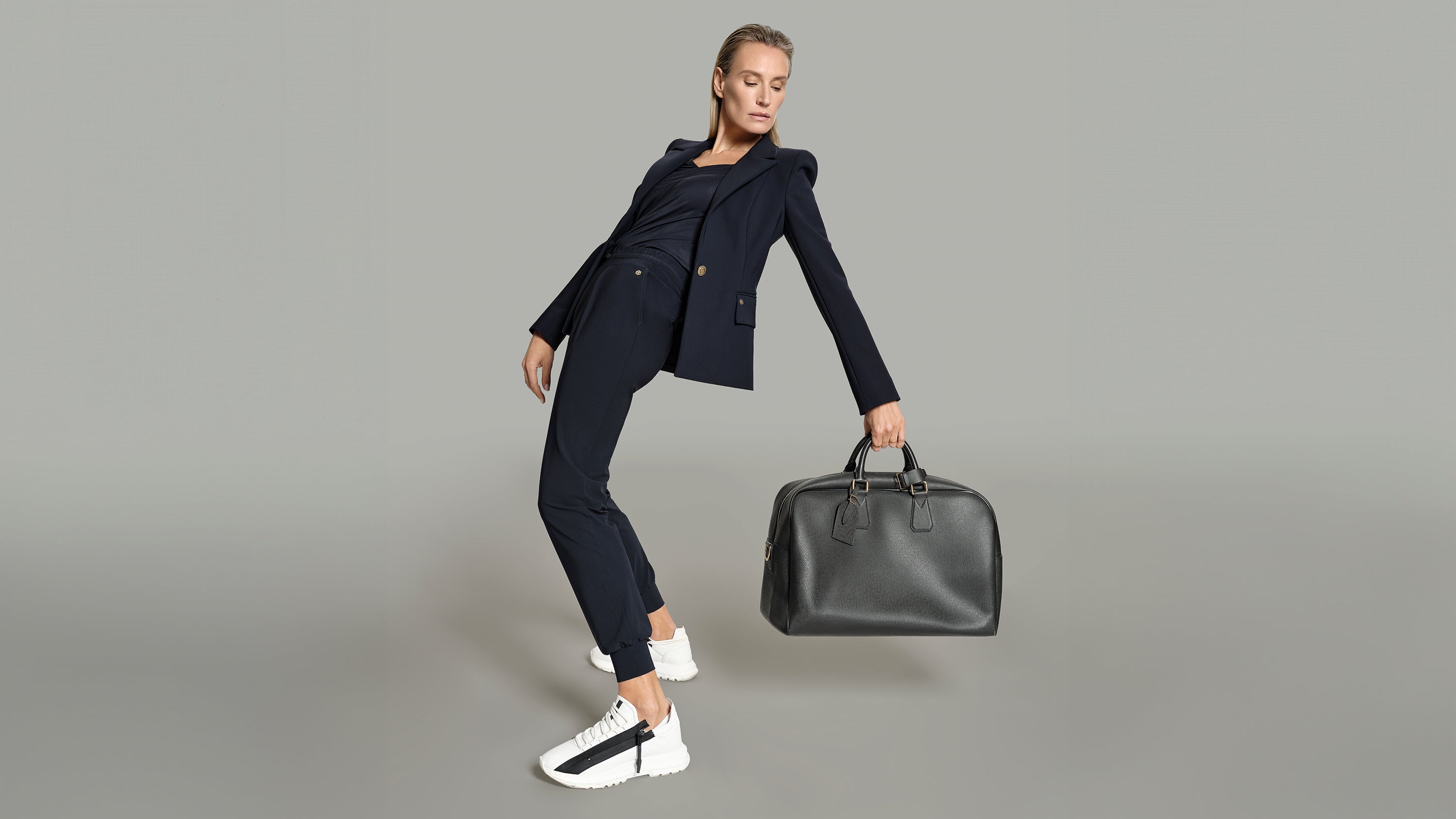 Unsere innovativen Second-Skin-Materialien sind atmungsaktiv, knitterfrei, schnelltrocknend und pflegeleicht – für ganztägigen Komfort, fliessende Bewegungsfreiheit und eine selbstverständliche Eleganz.
