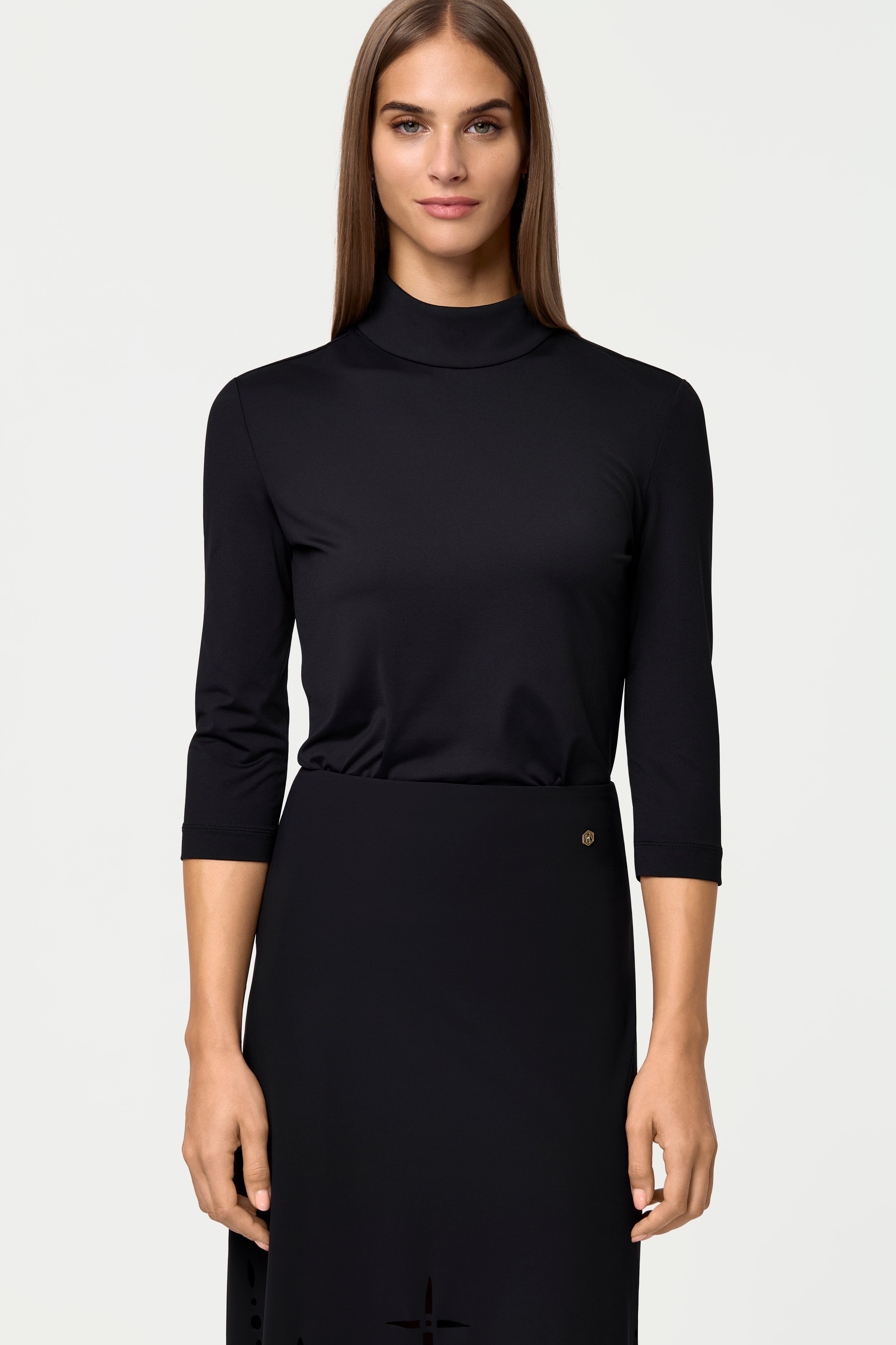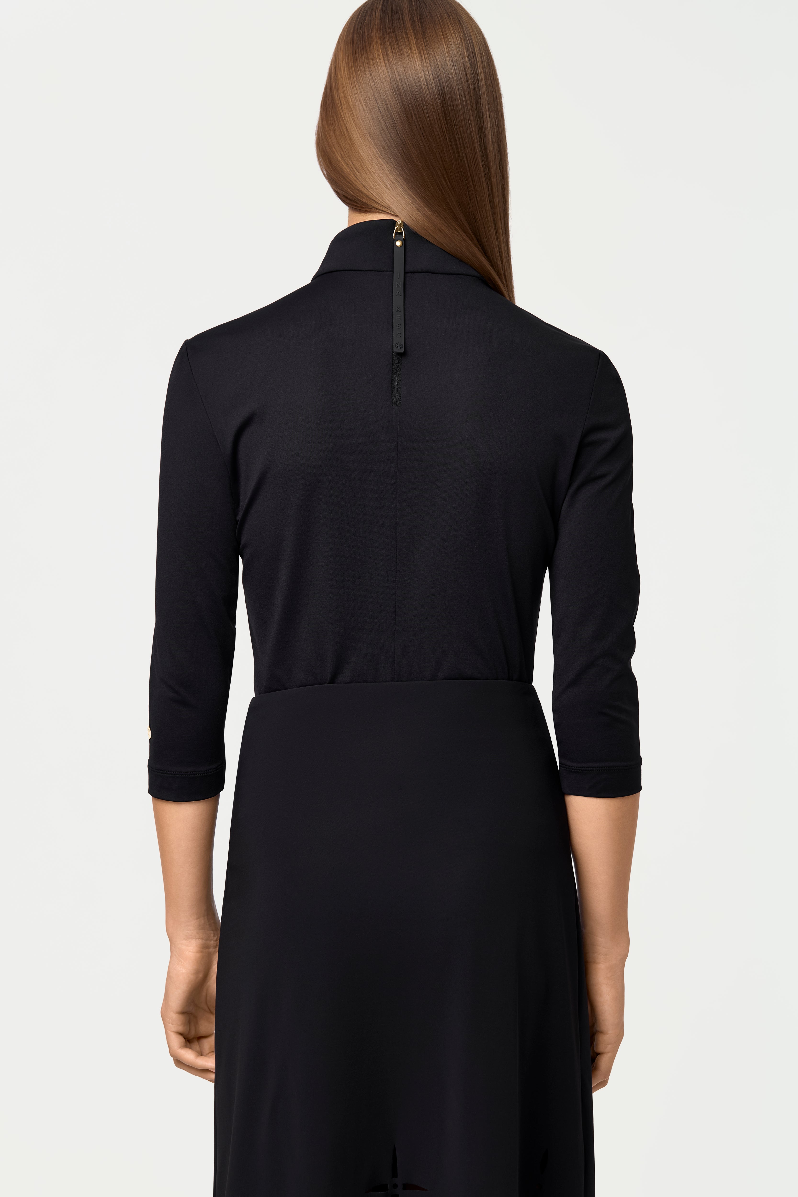 Weiches Oberteil mit mittellangen Ärmeln, einem dezenten Rollkragen und dem charakteristischen Reissverschluss auf der Rückseite für zusätzlichen Komfort und die perfekte Passform.