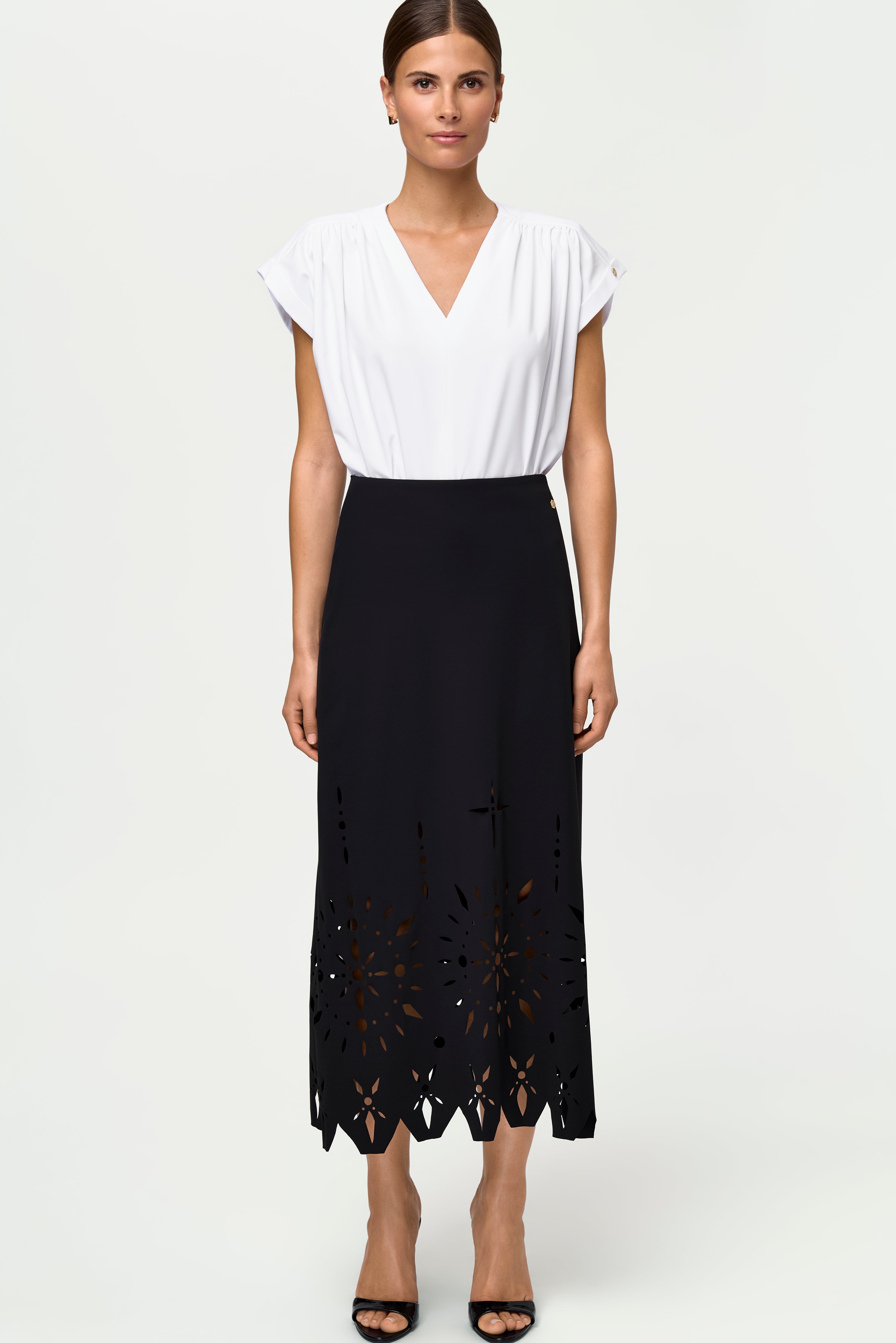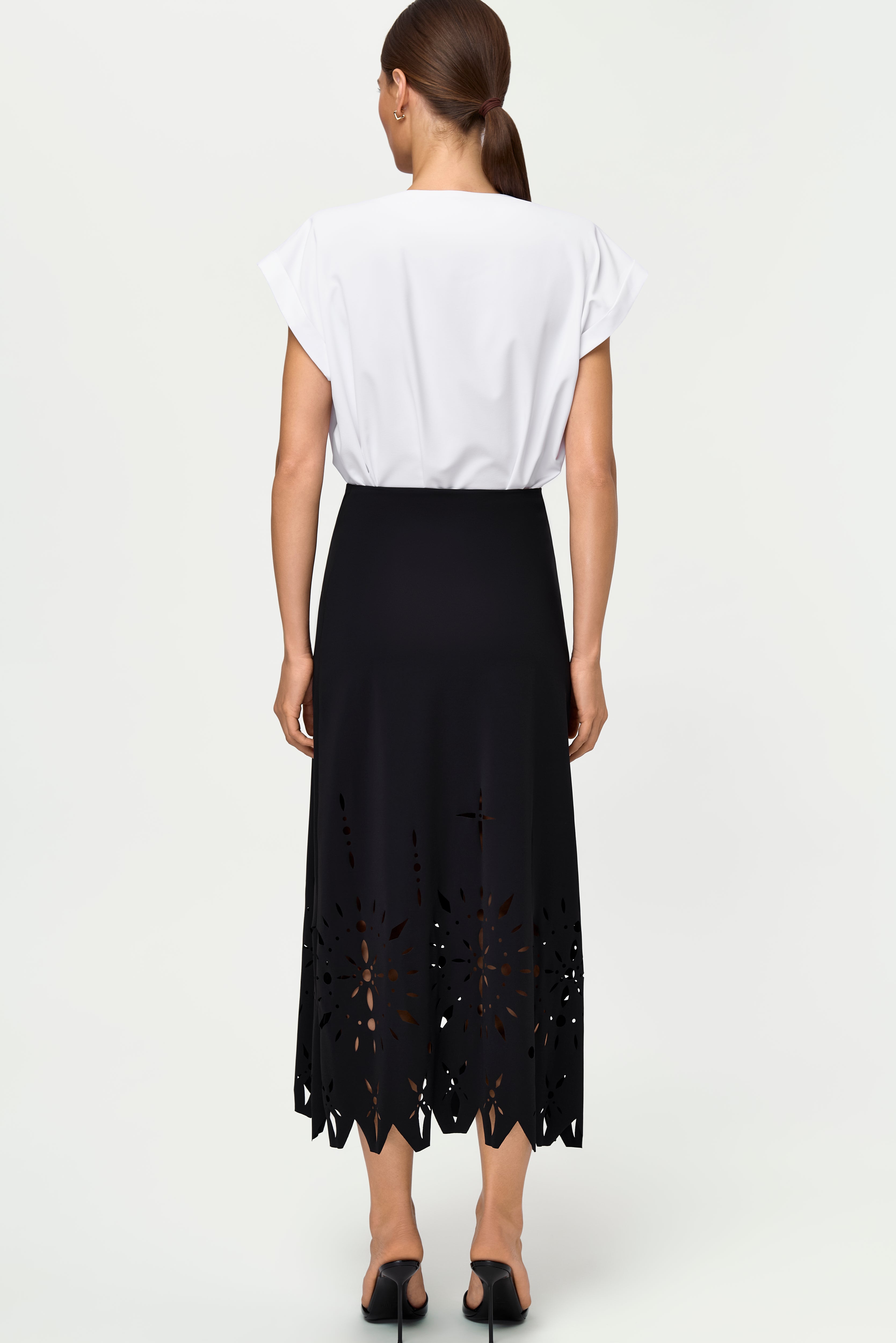 Midi-length, laser-cut stretch skirt