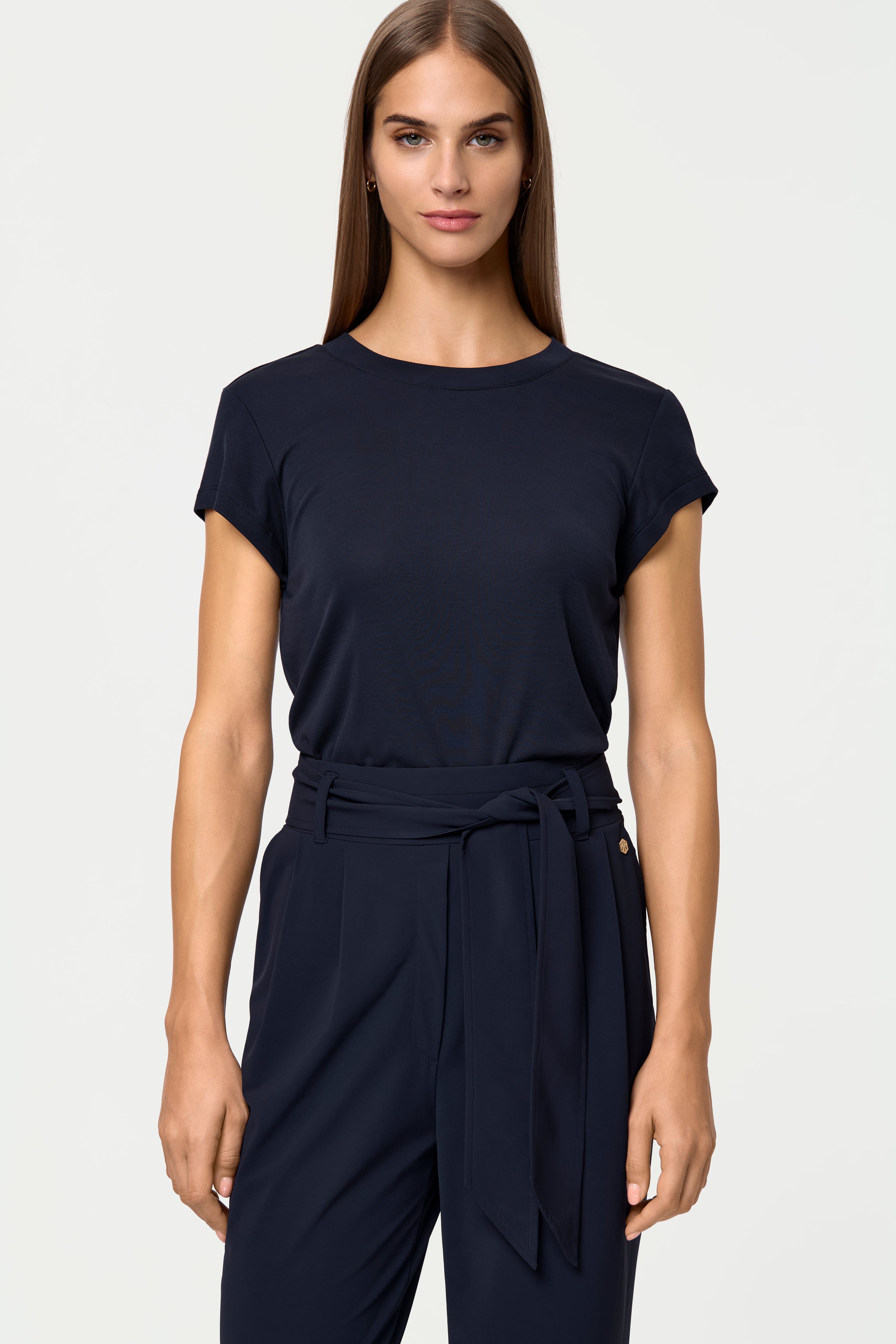 The ODIL T-Shirt, made from soft, breathable lyocell TIMBERSIL fabric, offers all-day comfort with a relaxed fit, round neckline, and short sleeves. Balancing casual ease with refined simplicity, it’s a timeless wardrobe essential. Named for strength and grace, ODIL transitions effortlessly from day to night. Layer it or wear alone, paired perfectly with the LISCIA Pants deep navy.